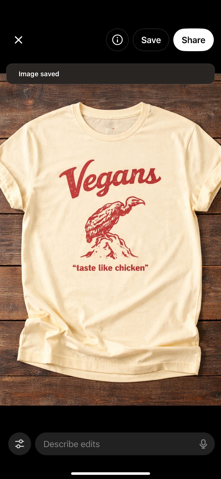 Keywords: vegan t-shirt, graphic tee, funny vegan shirt, vegan humor, vegan apparel, taste like chicken, vulture graphic, short sleeve shirt